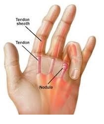 Πρόκειται για ανάπτυξη στενωτικής τενοντο-ελυτρίτιδας στις καμπτικές επιφάνειες των δακτύλων της άκρας χειρός. Η φλεγμονή αυτή μπορεί να οδηγήσει σε υπερτροφία των ελύτρων των καμπτικών τενόντων και σε σχηματισμό επώδυνων όζων. Το δάκτυλο που πάσχει συχνά κλειδώνει σε καμπτική θέση (όπως όταν κλείνει κρατώντας τη σκανδάλη όπλου)