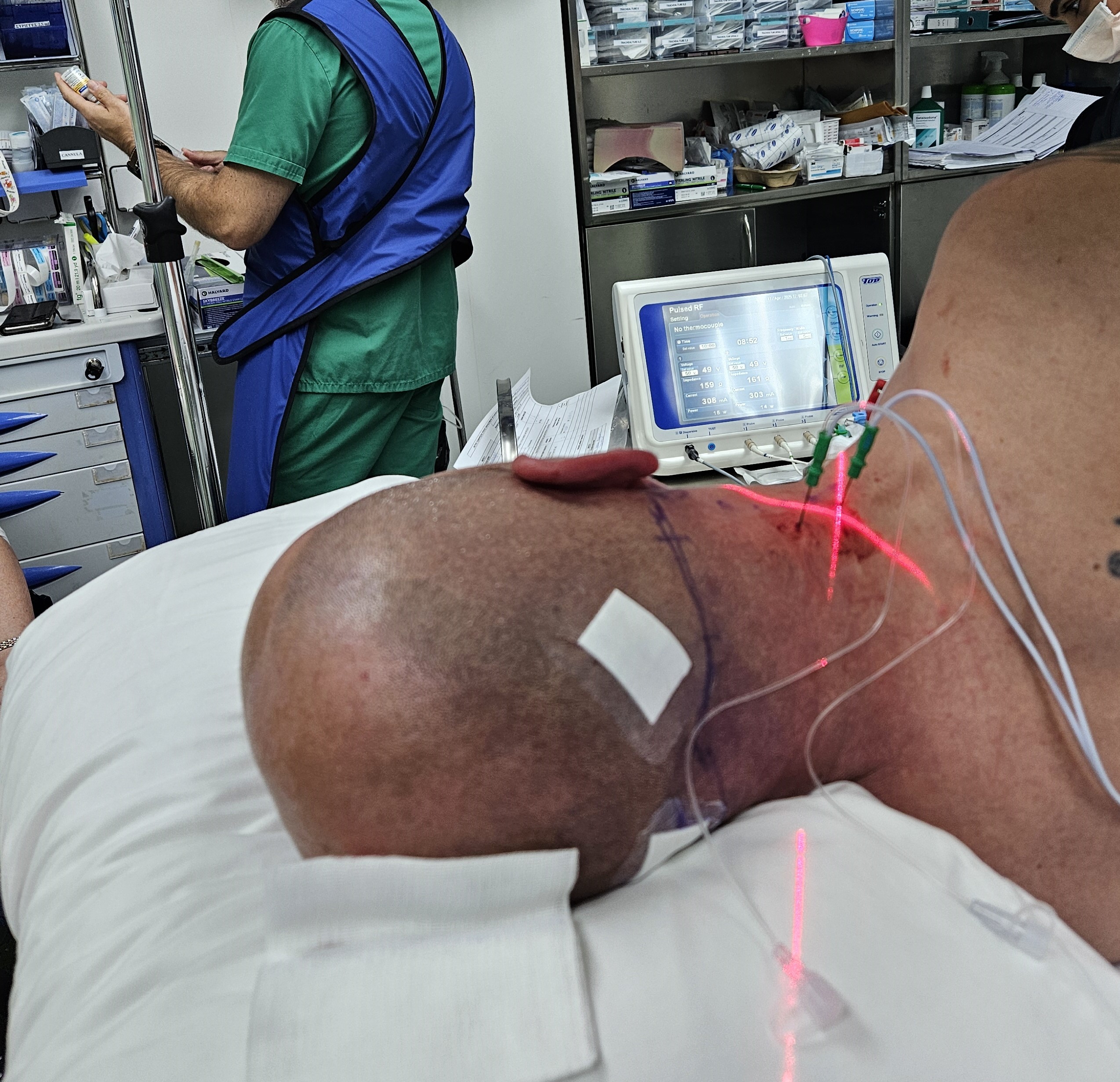 • Κατάλυση των μέσων νευρικών κλάδων με χρήση ραδιοσυχνοτήτων υπό ακτινοσκοπική καθοδήγηση