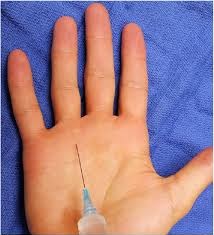 - Έγχυση στεροειδούς στο έλυτρο γύρω από τον καμπτικό τένοντα